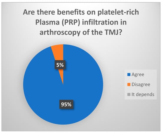 Level I arthroscopy (lysis and lavage) is effective in diagnosing intraarticular disease, with the added benefits of arthrocentesis. More advanced arthroscopic techniques (levels II and III) are able to act upon the damaged tissues, reducing inflammation, with the sub-synovial infiltration of corticosteroids (CS) or platelet-rich plasma (PRP), the lysis of adhesions, and disc repositioning and stabilization in advanced cases, affording statistically significant improvement especially of the pain and joint mobility []. Arthroscopy of the TMJ can delay the need for open surgery in cases of advanced joint dysfunction [,].