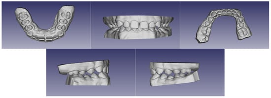 In the first step of diagnostic imaging (September 2022), an orthopantomography evaluation (Figure 3) was performed. It demonstrated the presence of all permanent teeth and four buds of wisdom teeth. The cephalometric radiograph is shown in Figure 4, and the outcome of the cephalometric analysis is presented in Table 1. Furthermore, the intraoral scans were taken with a 3Shape TRIOS 4 scanner (3Shape Trios A/S, Copenhagen, Denmark) (Figure 5).