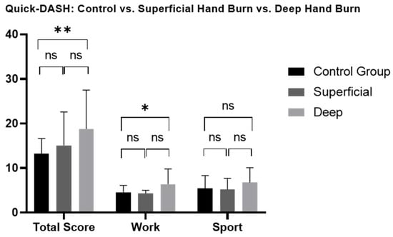 APA StyleWatzinger, N., Hecker, A., Petschnig, D., Tran, J., Glantschnig, C., Moshammer, M., Pignet, A.-L., Ellersdorfer, A.-M., & Kamolz, L.-P. (2024). Long-Term Functional Outcomes after Hand Burns: A Monocentric Controlled Cohort Study. Journal of Clinical Medicine, 13(12), 3509. https://doi.org/10.3390/jcm13123509