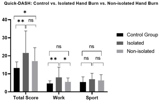 - Wu, A.; Edgar, D.W.; Wood, F.M. The QuickDASH is an appropriate tool for measuring the quality of recovery after upper limb burn injury. Burns 2007, 33, 843–849. [Google Scholar] [CrossRef]