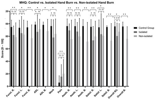 | Parameter | Hand Burn Group | Healthy Control Group | p-Value |