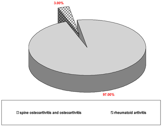 A total of 100 patients from the Włókniarz Sanatorium in Busko-Zdrój were initially included in the study. These patients underwent HSBB, with 97 patients eventually completing the study and having their data analyzed. Indications for sanatorium treatment were OADs: spine osteoarthritis (SOA), osteoarthritis (OA), and rheumatoid arthritis (RA). The patients underwent 2 weeks of treatment in sulfide–hydrogen sulfide brine at 32–36 °C for 10–15 min per treatment throughout their rehabilitation regimen. The following procedures were performed on the patients.