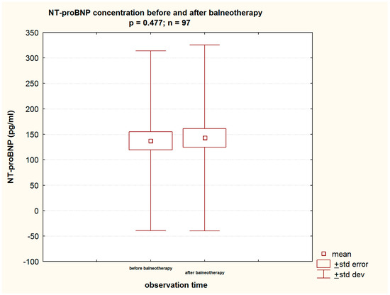 Figure 3. The level of NT-proBNP before and after balneotherapy in the study group.