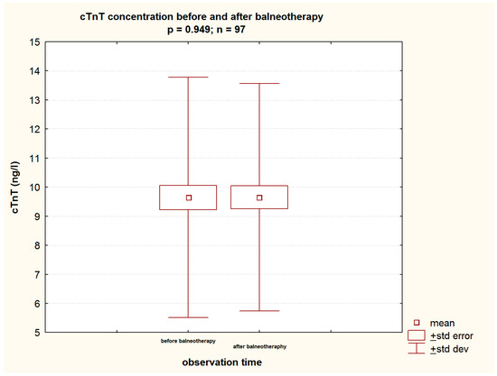 Figure 4. The level of cTnT before and after balneotherapy in the study group.