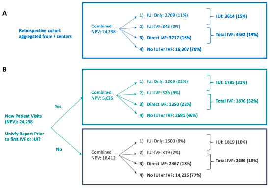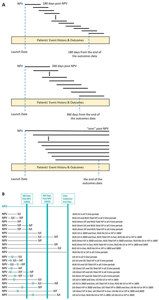 Patient Groups: The Univfy Group comprised patients who received a Univfy report prior to the first IUI or first IVF usage or had no IUI or IVF subsequent to receiving the Univfy report, within the analysis period (Figure 3A,B). The No Univfy Group comprised patients who did not receive a Univfy report prior to their first IUI or IVF, or at any time during that same analysis period.