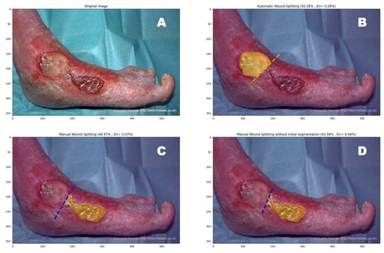 6]. We further refined that method to create an objective algorithm that has a low variability. This algorithm should be able to split a wound into two equal areas and create a splitting line that can be transferred into real-world clinical applications.