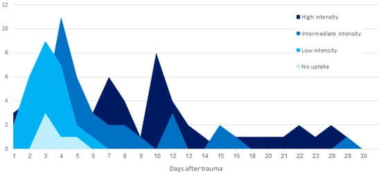 Radiotracer uptake intensity according to time after trauma.
