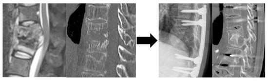 - Fukuta, S.; Miyamoto, K.; Masuda, T.; Hosoe, H.; Kodama, H.; Nishimoto, H.; Sakaeda, H.; Shimizu, K. Two-stage (posterior and anterior) surgical treatment using posterior spinal instrumentation for pyogenic and tuberculotic spondylitis. Spine 2003, 28, E302–E308. [Google Scholar] [CrossRef] [PubMed]