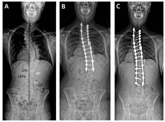 - Fujii, T.; Kawabata, S.; Suzuki, S.; Tsuji, O.; Nori, S.; Okada, E.; Nagoshi, N.; Yagi, M.; Michikawa, T.; Nakamura, M.; et al. Can Postoperative Distal Adding-On be Predicted in Lenke Type 1B and 1C Curves with Intraoperative Radiographs? Spine 2022, 47, E215–E221. [Google Scholar] [CrossRef]