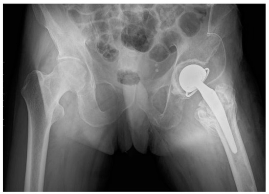 Hip fractures and strokes are prevalent and escalating issues in geriatric healthcare. With the global aging population, approximately 1.5 million hip fractures and 14 million strokes occur annually. The projections indicate that these numbers will rise, with proximal femur fractures expected to reach 2.5 million by 2025 and 4.5 million by 2050 [1,2,3,4,5,6,7,8]. Stroke is a significant risk factor that increases the risk of femur fractures in the paretic limb due to sensory disorders, weakened muscle strength, increased muscle tension, impaired balance, and cognitive dysfunction. The literature reports that 7.3–15.3% of stroke patients experience femoral fractures, with their risk of hip fractures being 2–4 times higher than that of healthy individuals [6,9]. Proximal femur fractures significantly impair patients’ quality of life by limiting locomotion and mobility. Prolonged immobility in stroke patients leads to permanent joint stiffness, muscle atrophy, and systemic issues such as cardiorespiratory disorders, significantly increasing their mortality risk [10,11,12]. These patients require continuous care and medical supervision, which impose substantial economic and social burdens, emphasizing the necessity for effective management strategies [5]. In this article, we will explore the challenges and management strategies associated with hip arthroplasty in patients who have experienced a stroke and subsequent failure of fixation treatment for proximal femur fractures. The multi-morbidity of elderly patients and the dependence resulting from a stroke, combined with a proximal femur fracture, present significant challenges for the entire treatment team, including doctors, physiotherapists, nurses, and family members. These challenges are compounded by the patient’s spastic muscle paresis, limited joint mobility, and sensory disturbances. The postoperative complications in stroke patients undergoing hip arthroplasty are exacerbated by factors such as prolonged immobilization, pain, urinary catheter insertion, and postoperative disorientation. These factors significantly reduce the likelihood of regaining independence and increase the risk of further complications, including additional strokes, heart attacks, and even death [13,14]. Timely and safe surgical intervention, followed by early postoperative rehabilitation, are crucial for stroke patients with hip fractures. These measures significantly enhance the chances of regaining independence and improving the overall outcomes [5]. Furthermore, addressing the unique challenges posed by spastic muscle paresis and limited joint mobility in post-stroke patients requires a multidisciplinary approach. This includes comprehensive preoperative planning, effective pain management, and a structured rehabilitation program to mitigate the risks of long-term complications and enhance patient recovery.