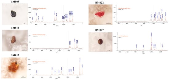 MPs were detected in 38.98% (23 of 59) of the breast milk samples. The group with detected MPs included thirteen samples with a single MP polymer, six samples with two MP polymers, three samples containing three MP polymers, and one sample with four MP polymers. The most common MPs were PP, PE, and PVC. The morphological and chemical characteristics of the identified MPs are detailed in Table 2. The analysis revealed a diverse array of MP characteristics within the collected samples. This detailed characterization provided insights into the morphological diversity and chemical composition of the identified microparticles across the collected samples. The detected MPs were identified according to their shape, color, dimensions, and chemical composition (Figure 1). In terms of shape, we identified only irregular fragments and spheres but no films, cellulose, or fibers. Moreover, most of the identified MPs were pigmented (approximately 90%), with dark and brown being the most abundant colors.