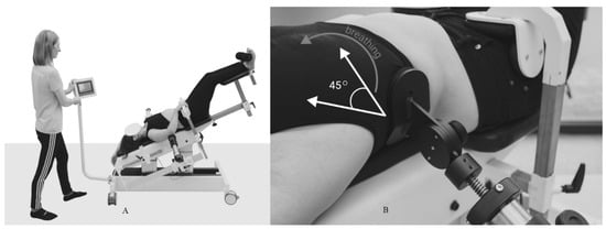 For each child, the physiotherapist recommended two to three exercises to do at home in the period between meetings. In addition, the parent/guardian was instructed and obliged to massage the child’s back every day for 15 min, and, after the first program, physiotherapists checked the correctness of their performance. The patented GraviSpine device (Figure 2A,B) is a type of inversion lift for the lower limbs equipped with a system of movable side pads, indirectly correcting the curved section of the spine on three planes.