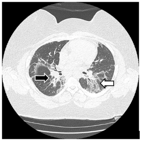 - Waseda, Y.; Johkoh, T.; Egashira, R.; Sumikawa, H.; Saeki, K.; Watanabe, S.; Matsunuma, R.; Takato, H.; Ichikawa, Y.; Hamaguchi, Y.; et al. Antisynthetase syndrome: Pulmonary computed tomography findings of adult patients with antibodies to aminoacyl-tRNA synthetases. Eur. J. Radiol. 2016, 85, 1421–1426. [Google Scholar] [CrossRef] [PubMed]