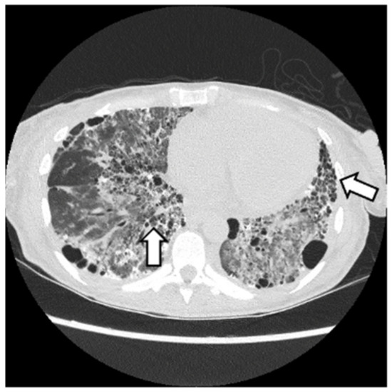 - Long, K.; Danoff, S.K. Interstitial Lung Disease in Polymyositis and Dermatomyositis. Clin. Chest Med. 2019, 40, 561–572. [Google Scholar] [CrossRef] [PubMed]