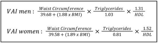 Formula used to calculate the Visceral Adiposity Index (VAI).