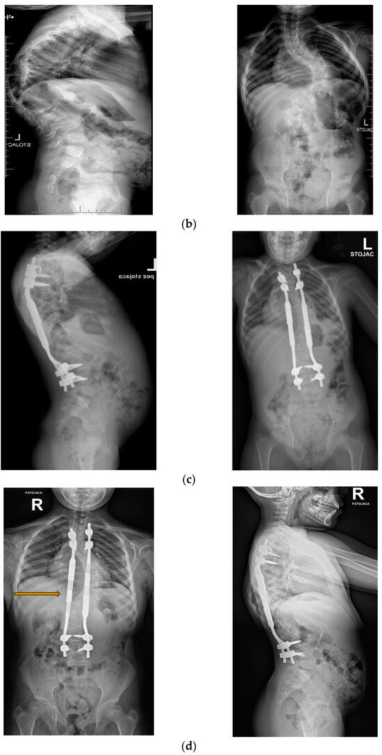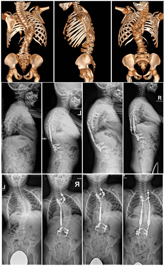 - Yokogawa, N.; Demura, S.; Ohara, T.; Tauchi, R.; Takimura, K.; Yanagida, H.; Yamaguchi, T.; Watanabe, K.; Suzuki, S.; Uno, K.; et al. Instrumentation failure following pediatric spine deformity growth-sparing surgery using traditional growing rods or vertical expandable prosthetic titanium ribs. BMC Musculoskelet. Disord. 2024, 25, 115. [Google Scholar] [CrossRef] [PubMed]