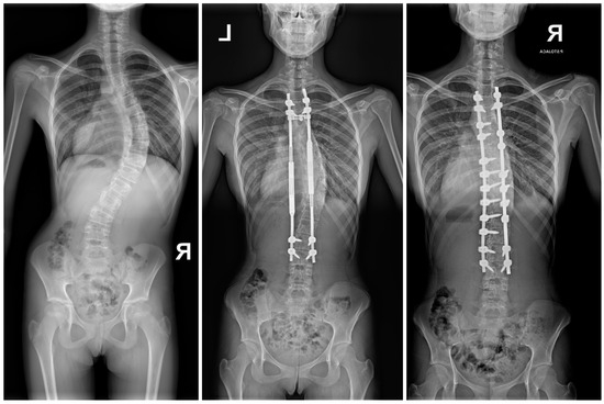- Grabala, P.; Gupta, M.C.; Pereira, D.E.; Latalski, M.; Danielewicz, A.; Glowka, P.; Grabala, M. Radiological Outcomes of Magnetically Controlled Growing Rods for the Treatment of Children with Various Etiologies of Early-Onset Scoliosis—A Multicenter Study. J. Clin. Med. 2024, 13, 1529. [Google Scholar] [CrossRef] [PubMed]