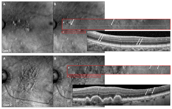 - Maurizio, B.P.; Pierluigi, I.; Stelios, K.; Stefano, V.; Marialucia, C.; Ilaria, Z.; Francesco, B. Retro-mode imaging and fundus autofluorescence with scanning laser ophthalmoscope of retinal dystrophies. BMC Ophthalmol. 2012, 12, 8. [Google Scholar] [CrossRef] [PubMed]