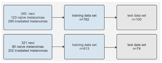 This study received approval from the Institutional Review Board at Charité University Hospital Berlin and adhered to the principles of the Declaration of Helsinki. The dataset comprised 762 consecutive color fundus photographs (CFPs) retrospectively collected from subjects seen at the Ocular Oncology Department of Charité University Hospital Berlin between January 2010 and January 2023. The inclusion criteria covered subjects diagnosed with choroidal nevus, treatment-naïve choroidal melanoma, and irradiated choroidal melanoma, with irradiation involving either proton beam therapy or plaque radiotherapy. The exclusion criteria included inadequate imaging quality, prior treatment at another clinic, and prior endoresection surgery.