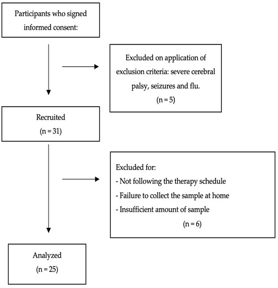 The exclusion criteria were the presence of severe neurological disease, severe behavioral disorder, autism spectrum disorder level 3, the systemic administration of corticosteroids, orthopedic surgery during the last three months, comorbidities, malnutrition, and maternal drug use during pregnancy. Information was collected through an informal interview on birth data, drugs used by mother and child, sleep habits of the child, and parental habits and illnesses to help determine the criteria for inclusion and exclusion from the study.
