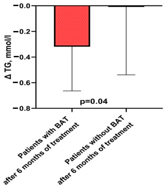The data indicate that significant changes in delta parameters were observed only in the triglyceride parameters (p = 0.04) of patients with BAT. These data are presented in Figure 2.