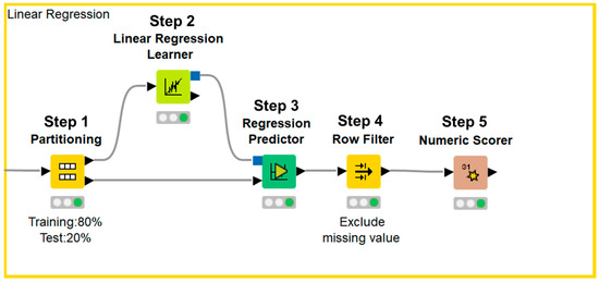 KNIME workflow for multiple linear regression analysis.
