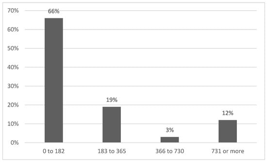 There were four ranges used to identify the intervention duration of treatments in days. The range of 0–182 days included 21 studies, followed by 183–365 days and 731 days or more, each with 4 studies, and finally, 549–730 days with 1 study. Explore Figure 7 to visualize the distribution of treatment durations across the studies.