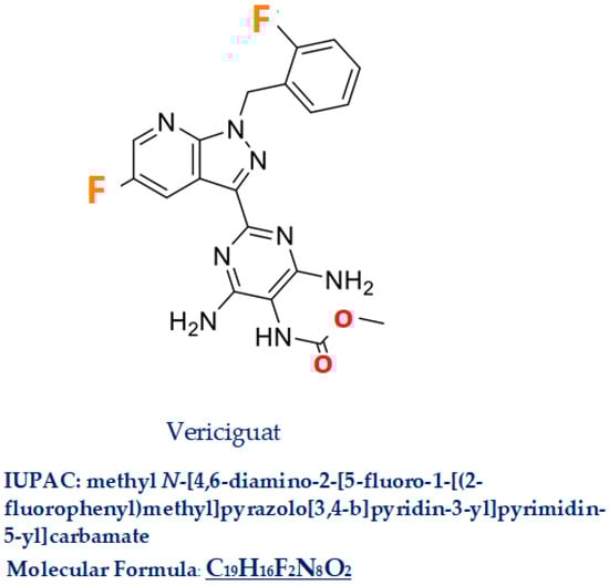 - PubChem. Vericiguat. Available online: https://pubchem.ncbi.nlm.nih.gov/compound/54674461 (accessed on 11 June 2024).