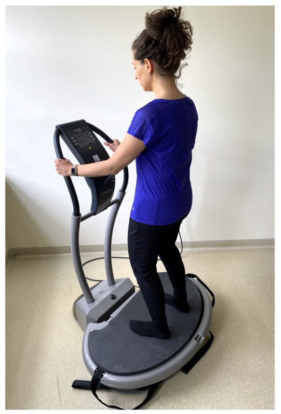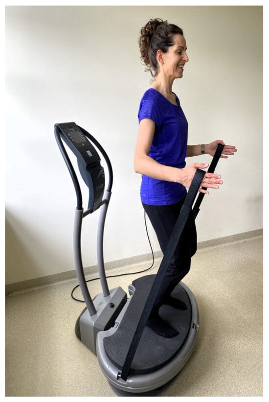 The final part included 3 exercises performed on a mat, with 6 repetitions each. The EXG followed the same training scheme without using the vibration platform in the main part, conducted as group sessions with 3–4 participants (except for the first and last sessions, which were conducted individually). The detailed methodology of the exercises is described in our previous article [].