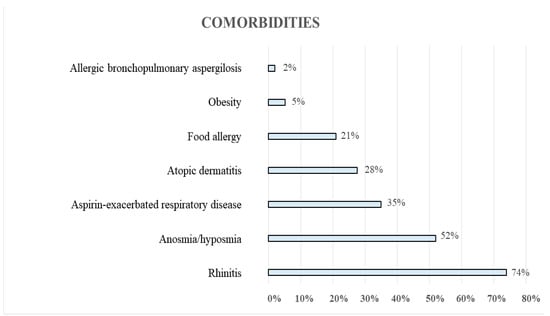 An overall 93% of patients had at least one comorbidity, with rhinitis being the most frequent (Figure 1).
