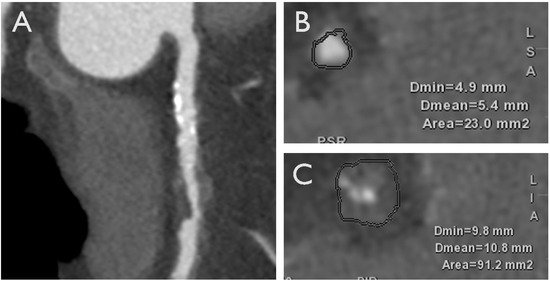 - Lee, J.M.; Choi, G.; Koo, B.K.; Hwang, D.; Park, J.; Zhang, J.; Kim, K.J.; Tong, Y.; Kim, H.J.; Grady, L.; et al. Identification of High-Risk Plaques Destined to Cause Acute Coronary Syndrome Using Coronary Computed Tomographic Angiography and Computational Fluid Dynamics. JACC Cardiovasc. Imaging 2019, 12, 1032–1043. [Google Scholar] [CrossRef] [PubMed]