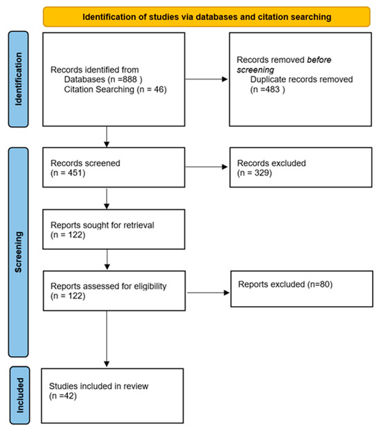 - Page, M.J.; McKenzie, J.E.; Bossuyt, P.M.; Boutron, I.; Hoffmann, T.C.; Mulrow, C.D.; Shamseer, L.; Tetzlaff, J.M.; Akl, E.A.; Brennan, S.E.; et al. The PRISMA 2020 Statement: An Updated Guideline for Reporting Systematic Reviews. Syst. Rev. 2021, 10, 89. [Google Scholar] [CrossRef] [PubMed]