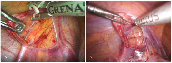 Laparoscopic varicocelectomy—(A) Application of polymer clip; (B) Ultrasonic scalpel varicocelectomy.