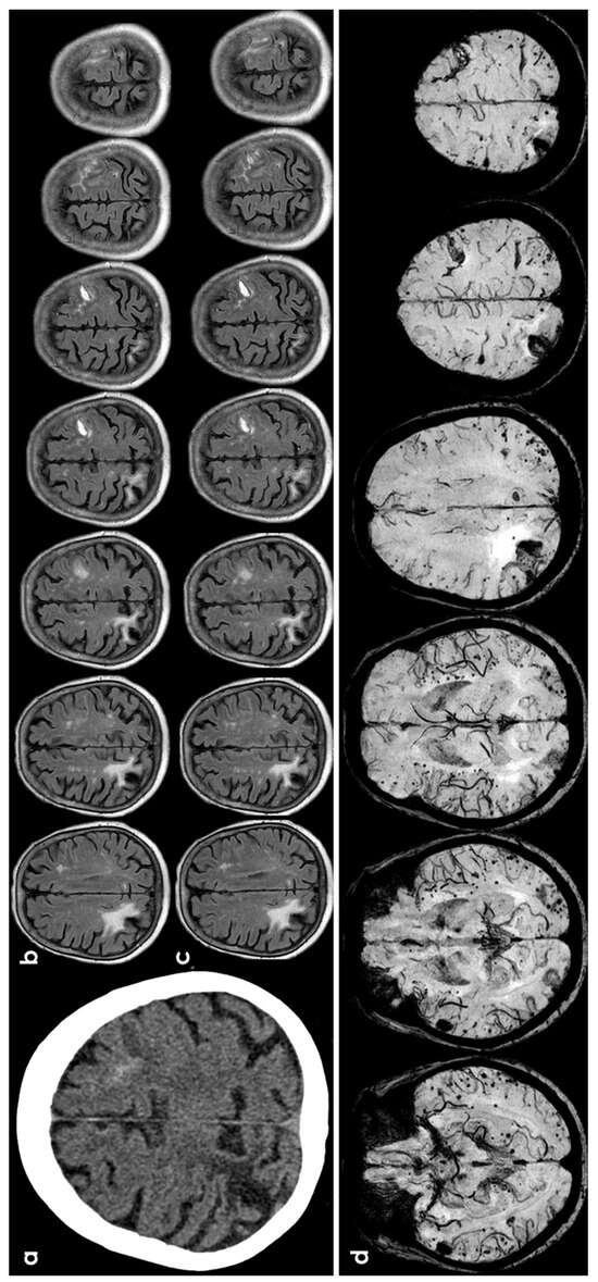 44. Lummel, N.; Wollenweber, F.A.; Demaerel, P.; Bochmann, K.; Malik, R.; Opherk, C.; Linn, J. Clinical Clinical spectrum, underlying etiologies and radiological characteristics of cortical superficial siderosis. J. Neurol. 2015, 262, 1455–1462. [Google Scholar] [CrossRef] [PubMed]