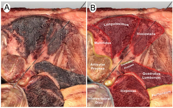 - Rodríguez-Sanz, J.; Borrella-Andrés, S.; Pérez-Bellmunt, A.; Fernández-De-Las-Peñas, C.; Albarova-Corral, I.; López-De-Celis, C.; Arias-Buría, J.L.; González-Rueda, V.; Malo-Urriés, M. Accuracy of Ultrasound-Guided Needle Placement on the L5 Lumbar Nerve Root: A Cadaveric Study. Am. J. Phys. Med. Rehabil. 2023, 102, 1091–1096. [Google Scholar] [CrossRef] [PubMed]