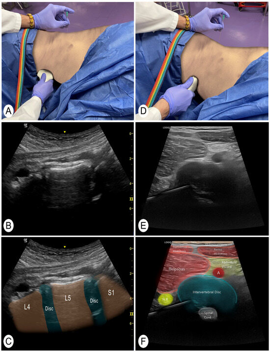 - Lam, K.H.S.; Hung, C.Y.; Wu, T.J. Ultrasound-Guided L5/S1 Intradiscal Needle Placement Using Biplanar Approach with the Patient in the Lateral Decubitus Position: A Report of Three Cases. Pain Pract. 2022, 22, 117–122. [Google Scholar] [CrossRef]