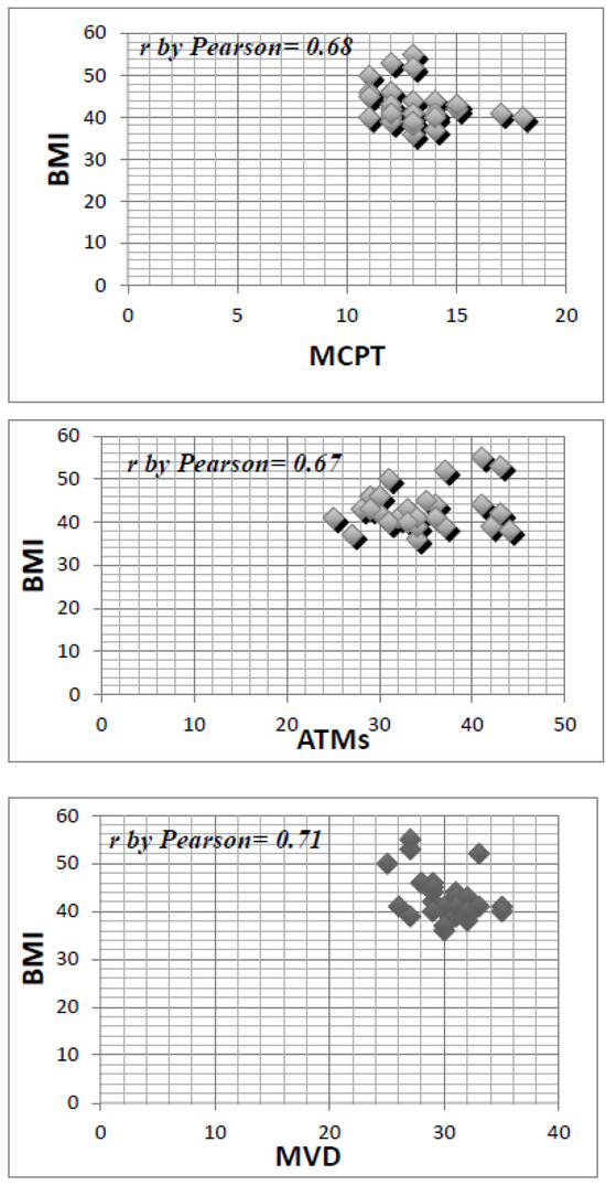 Pearson’s (r) correlation analysis between ATMs, MCPT, MVDm and BMI (Body Mass Index).