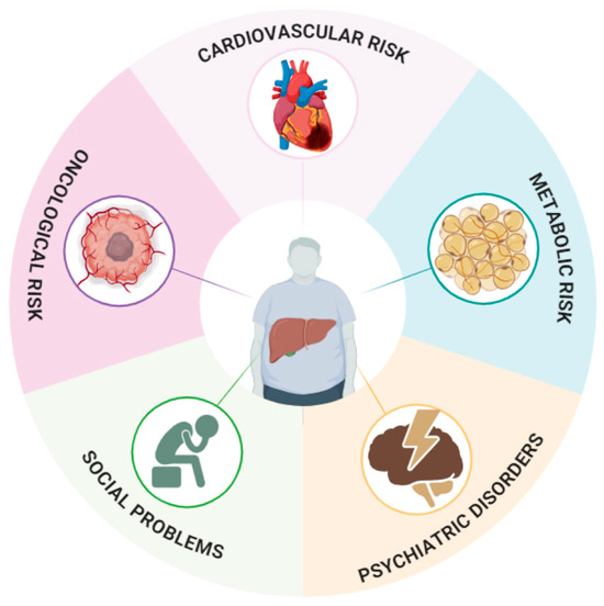 - Sanna, C.; Rosso, C.; Marietti, M.; Bugianesi, E. Non-Alcoholic Fatty Liver Disease and Extra-Hepatic Cancers. Int. J. Mol. Sci. 2016, 17, 717. [Google Scholar] [CrossRef]