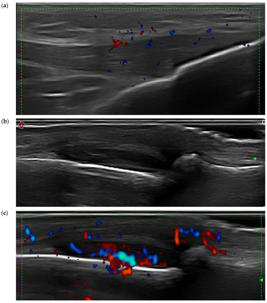 - Husic, R.; Gretler, J.; Felber, A.; Graninger, W.B.; Duftner, C.; Hermann, J.; Dejaco, C. Disparity between ultrasound and clinical findings in psoriatic arthritis. Ann. Rheum. Dis. 2014, 73, 1529–1536. [Google Scholar] [CrossRef]