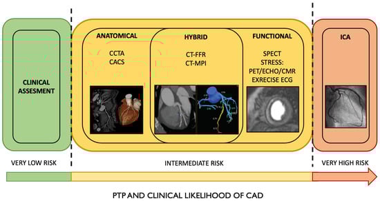 - Morrone, D.; Gentile, F.; Aimo, A.; Cameli, M.; Barison, A.; Picoi, M.E.; Guglielmo, M.; Villano, A.; DeVita, A.; Mandoli, G.E.; et al. Perspectives in noninvasive imaging for chronic coronary syndromes. Int. J. Cardiol. 2022, 365, 19–29. [Google Scholar] [CrossRef]