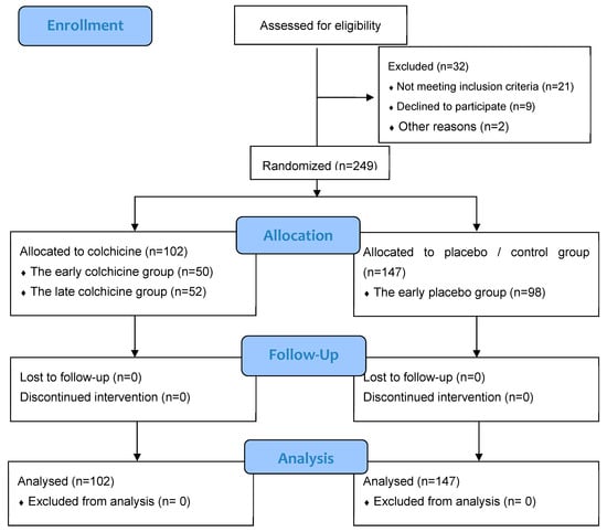 - Nawabi, A.Q.; Hassan, W.; Chen, L. Is Colchicine a New Game-Changer in Patients with Acute Coronary Syndrome? Cureus 2022, 14, e22874. [Google Scholar] [CrossRef] [PubMed]