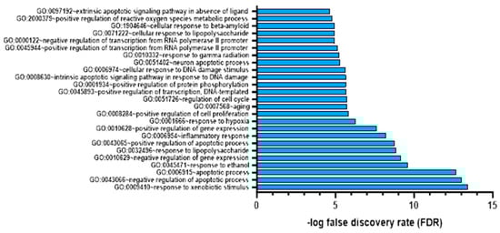 Based on Fisher’s exact test, the false discovery rate (FDR) was used as a statistical test method in the DAVID database. To validate the DAVID results, Network Analyst, commonly used for gene expression, functional analysis, and transcription factor analysis, was utilized [].
