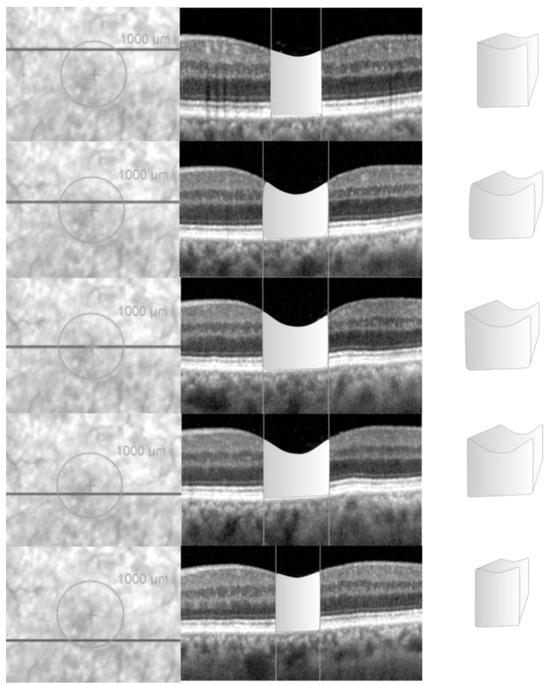 - Taşlıpınar Uzel, A.G.; Gelisken, F.; Kühlewein, L.; Neubauer, J. Volumetric Analysis of Lamellar Macular Hole: An Optical Coherence Tomography Study. Retina 2023, 43, 209–214. [Google Scholar] [CrossRef] [PubMed]