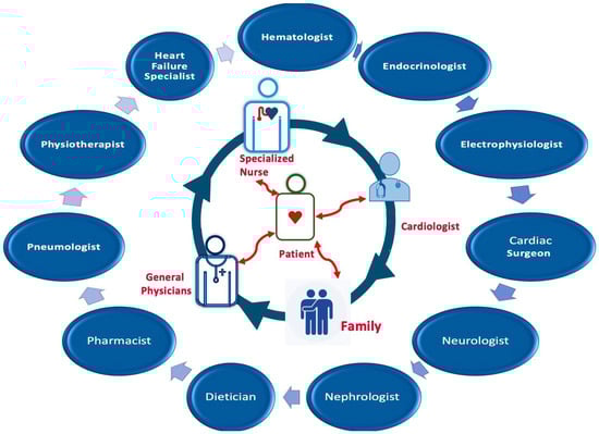 The initial management of AF patients primarily involves immediate or straightforward tests, typically conducted by acute or general doctors and specialized nurses. First-line treatment encompasses anticoagulation, antihypertensive therapy, lifestyle recommendations, and the critical rate or rhythm control decision, often in consultation with a dedicated cardiologist. Providing AF treatment knowledge to patients and their caregivers is a key component and predictor of adherence to drug treatments for AF [3,6]. The latest guidelines [3] delineate a significant paradigmatic shift, emphasizing the centrality of patient-oriented care in medical practice, wherein the focus pivots toward the individual patient rather than solely managing the disease entity, such as AF, and its acute complications.