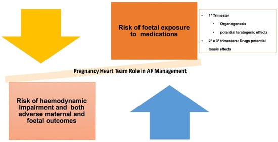 - Lucà, F.; Oliva, F.; Abrignani, M.G.; Russo, M.G.; Parrini, I.; Cornara, S.; Ceravolo, R.; Rao, C.M.; Favilli, S.; Pozzi, A.; et al. The Challenge of Managing Atrial Fibrillation during Pregnancy. Rev. Cardiovasc. Med. 2023, 24, 279. [Google Scholar] [CrossRef] [PubMed]