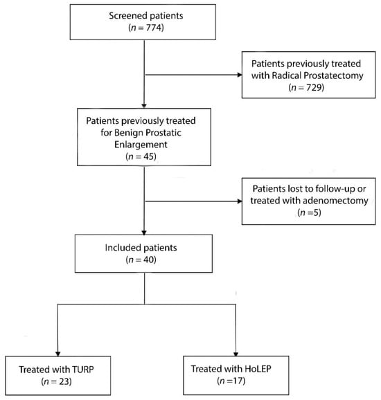 A total of 774 patients treated with ATOMS were screened. Patients with previous radical or simple prostatectomy or lost for follow-up were not considered (Figure 1).