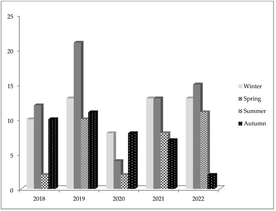 Seasonal trend in adolescent psychiatric hospitalizations from 1 January 2018 to 31 December 2022.