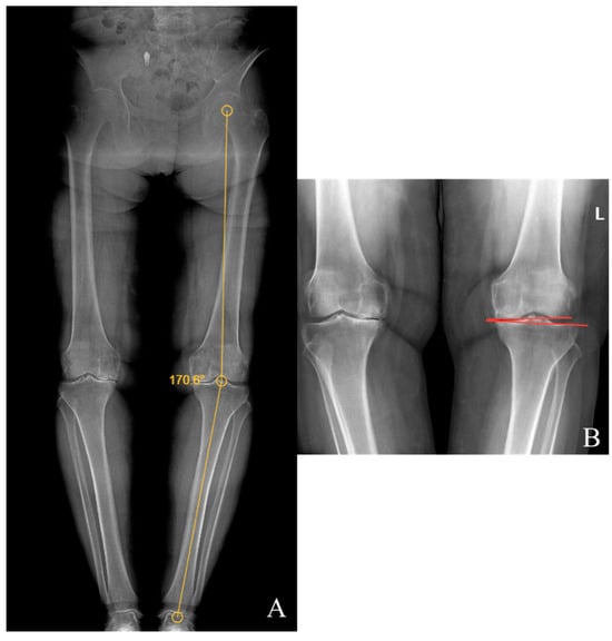 (A) Hip–knee–ankle angle; (B) knee joint line convergence angle.