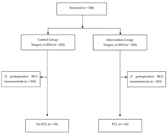 Flow chart showing the study inclusion criteria. BGC = blood glucose concentration, PCL = preoperative carbohydrate load.