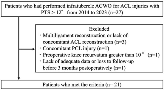 Flowchart of the patient selection process. ACWO, anterior closing wedge osteotomy; ACL, anterior cruciate ligament; PCL, posterior cruciate ligament; PTS, posterior tibial slope.